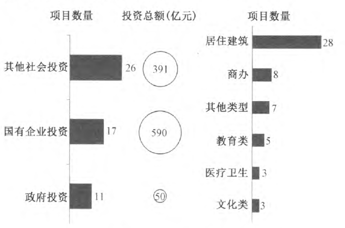 以上海地区为例据资料显示,2016年上海市实施装配式的建设项目共报建320个,应用BIM技术的项目共54个,占比17%。从应用阶段来看,跨设计、施工、运营全过程应用的项目数为37个,占比69%;单阶段应用的项目为17个,占比31%;从投资性质来看,政府投资11个,投资总额50亿元,国有企业投资17个,投资总额590亿元,其他社会投资26个,投资总额391亿元;从项目类型来看,装配式建设项目涵盖居住建筑(普通商品房、公租房、商住楼、经济适用房)、公共建筑(商办、医疗卫生、教育文化)及其他项目类型,如图2所示。